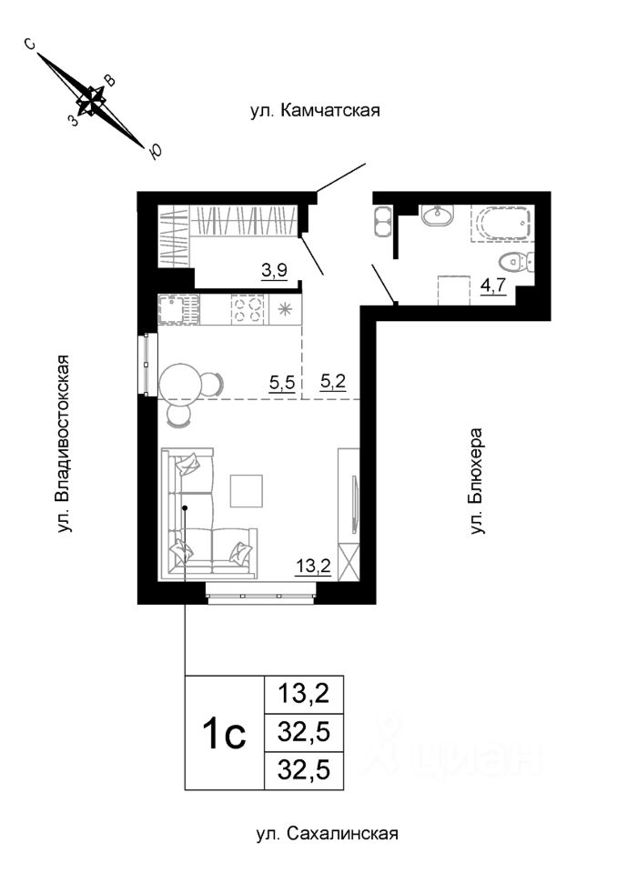 продам 1-к, Сахалинская, 2 стр.5 460 564 ₽