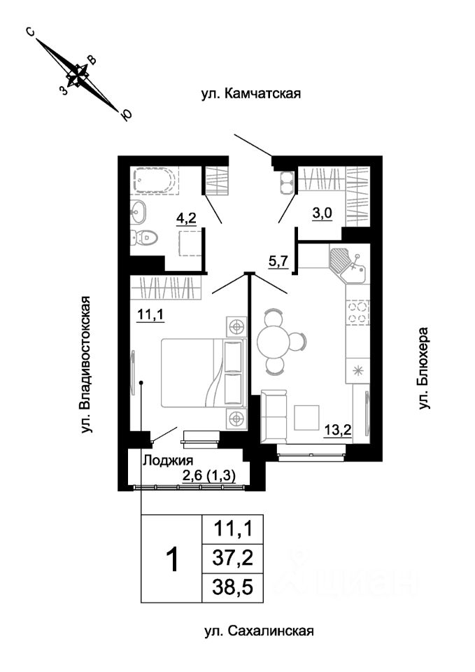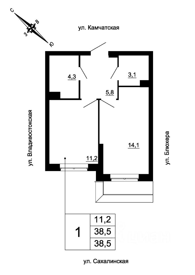 продам 1-к, Сахалинская, 2 стр.6 174 158 ₽