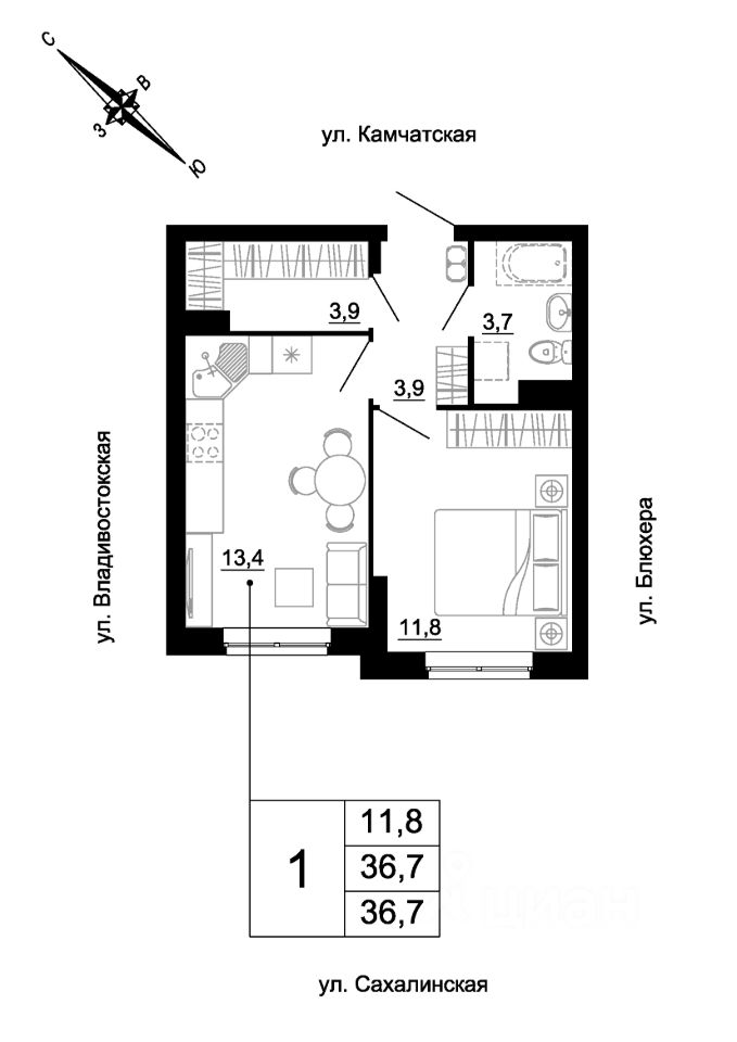 продам 1-к, Сахалинская, 2 стр.5 653 330 ₽
