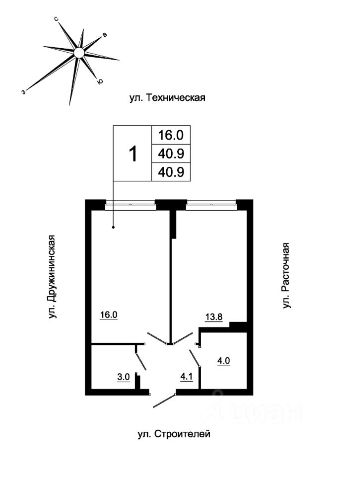 Общая площадь40 м2