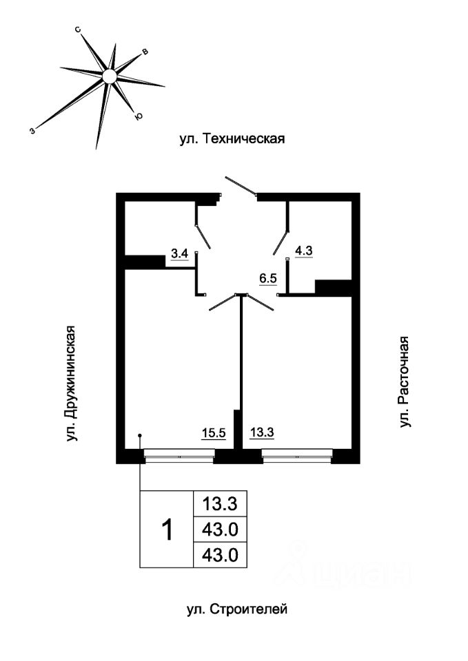 Общая площадь41,9 м2