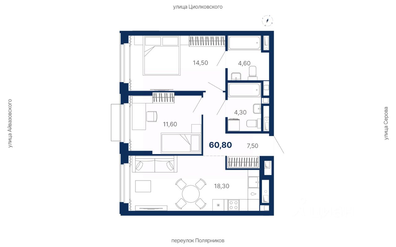 Комплекс представляет собой жилую экосистему Комфорт+ класса: многосекционный дом, закрытая территория, паркинг и коммерческая инфраструктура внутри комплекса.