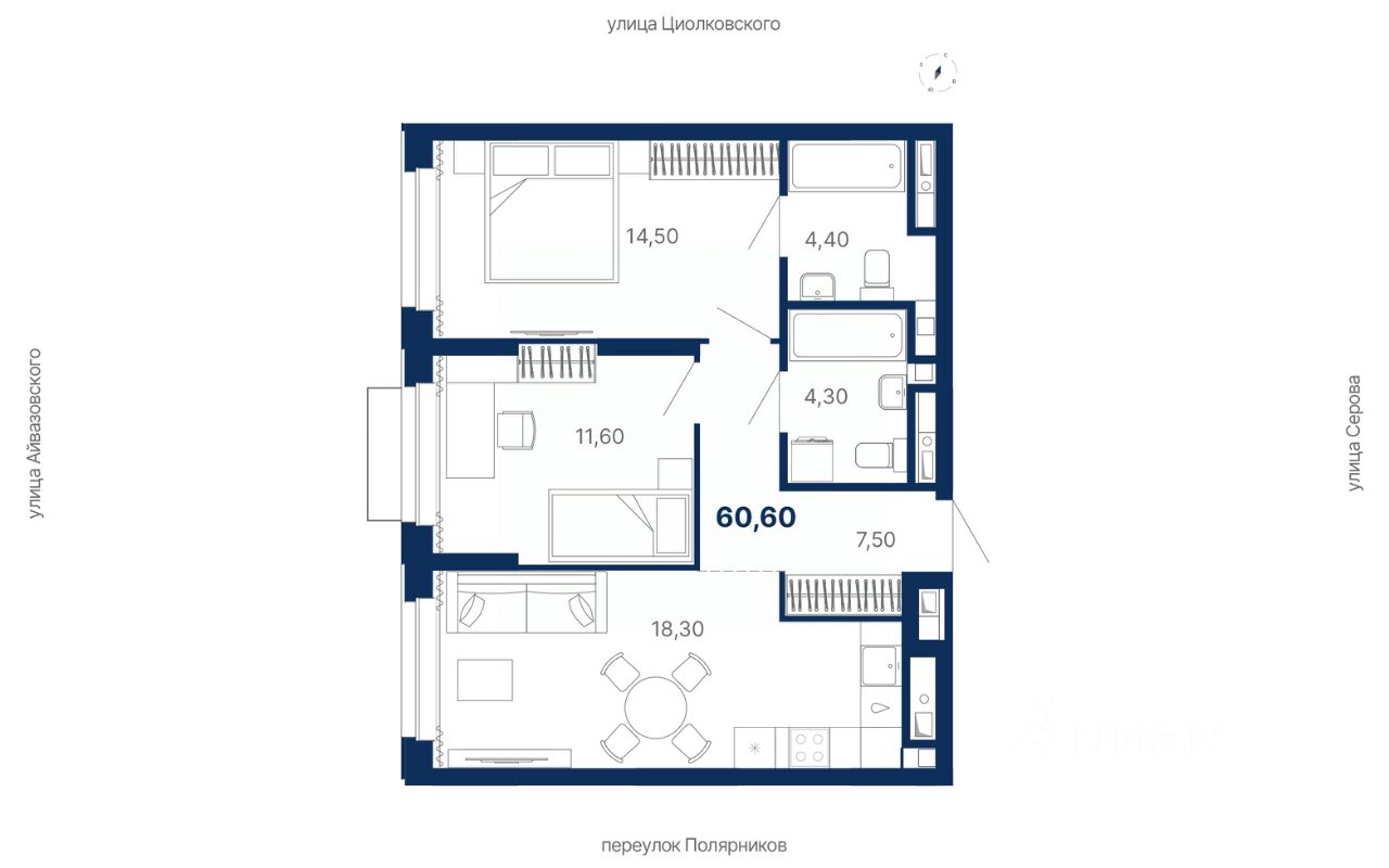 Комплекс представляет собой жилую экосистему Комфорт+ класса: многосекционный дом, закрытая территория, паркинг и коммерческая инфраструктура внутри комплекса.