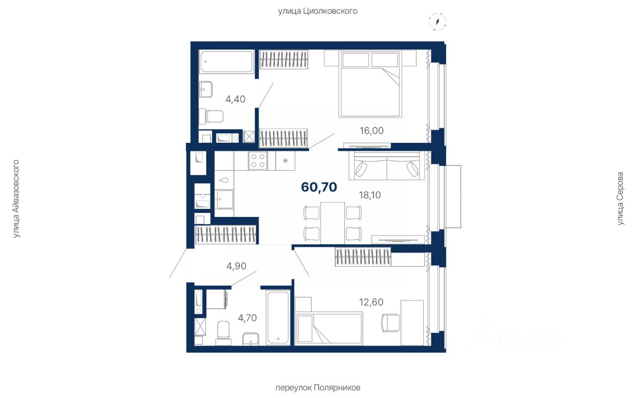 Комплекс представляет собой жилую экосистему Комфорт+ класса: многосекционный дом, закрытая территория, паркинг и коммерческая инфраструктура внутри комплекса.