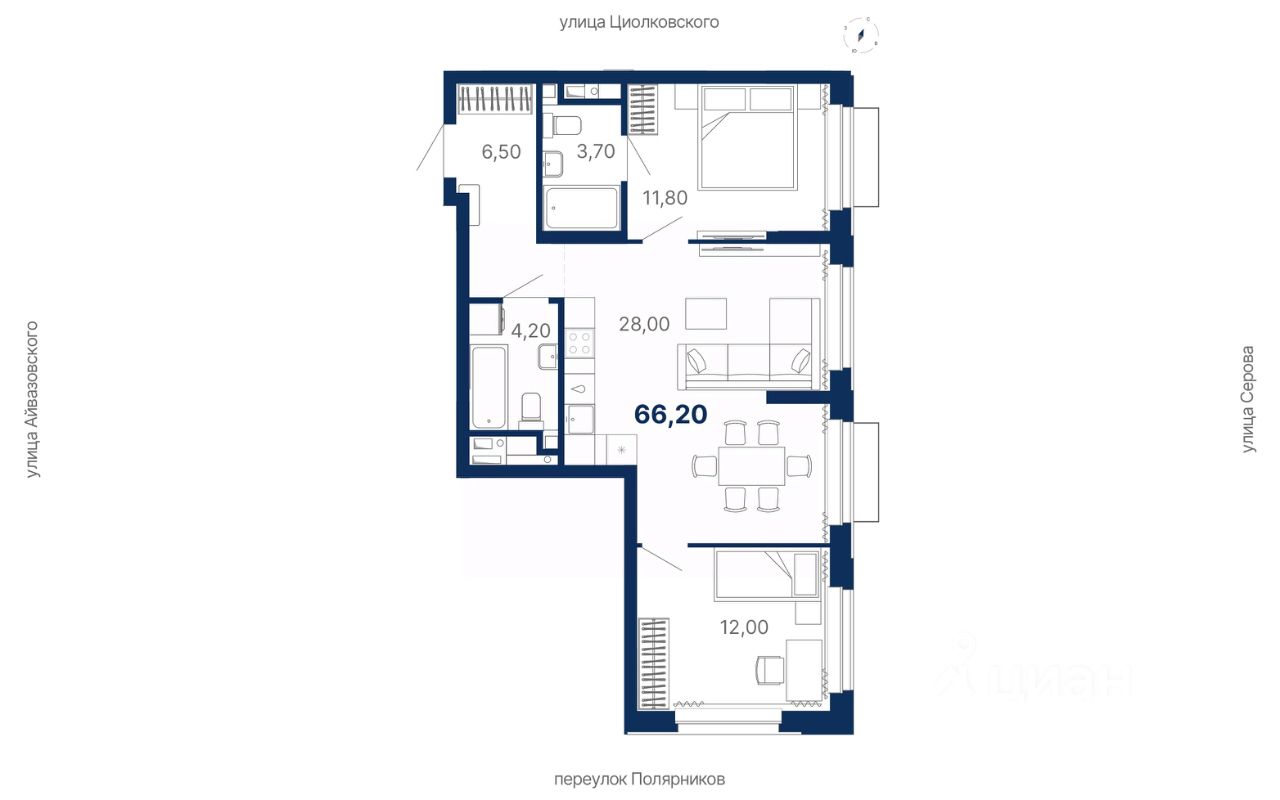 Комплекс представляет собой жилую экосистему Комфорт+ класса: многосекционный дом, закрытая территория, паркинг и коммерческая инфраструктура внутри комплекса.