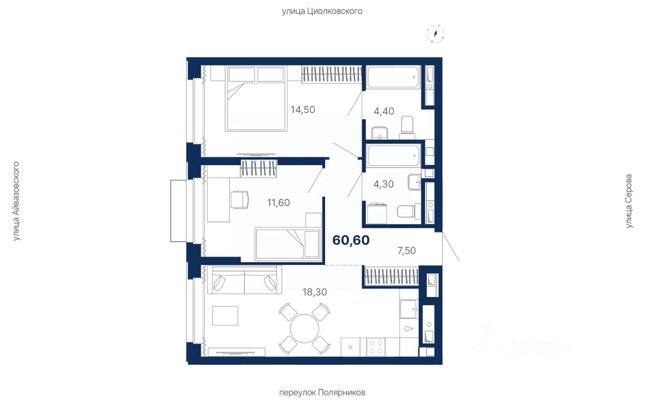 Комплекс представляет собой жилую экосистему Комфорт+ класса: многосекционный дом, закрытая территория, паркинг и коммерческая инфраструктура внутри комплекса.