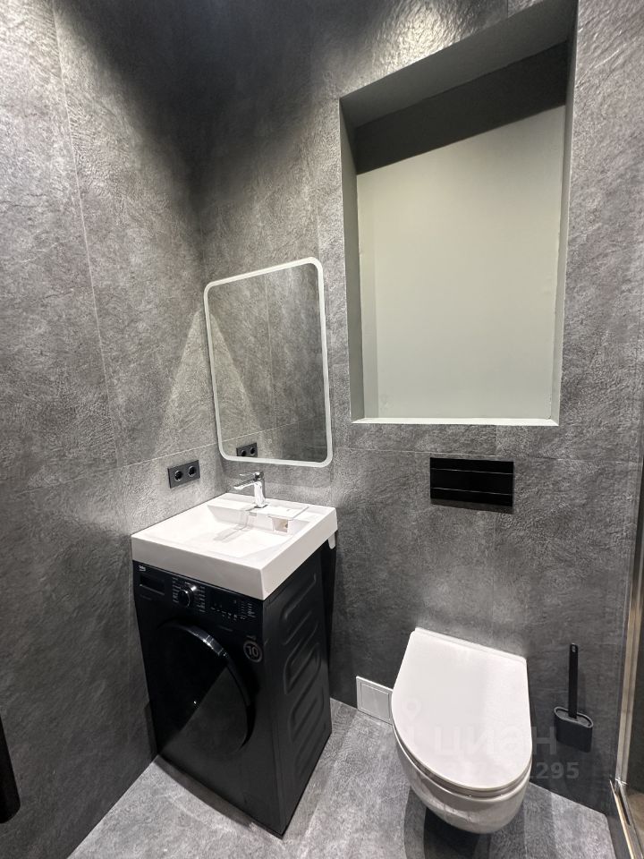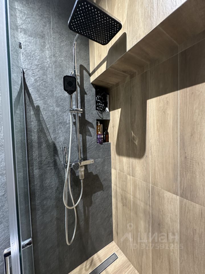 Душевая полностью выложена из керамогранита, оставили место под шкаф(на фото видно).