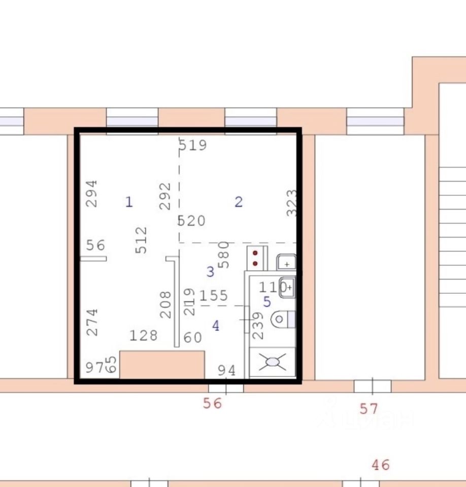 В квартире изначально не предполагался санузел, вывели все коммуникации.