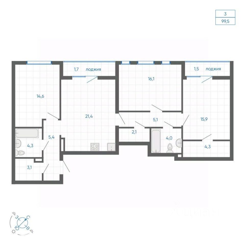 Общая площадь99,5 м2