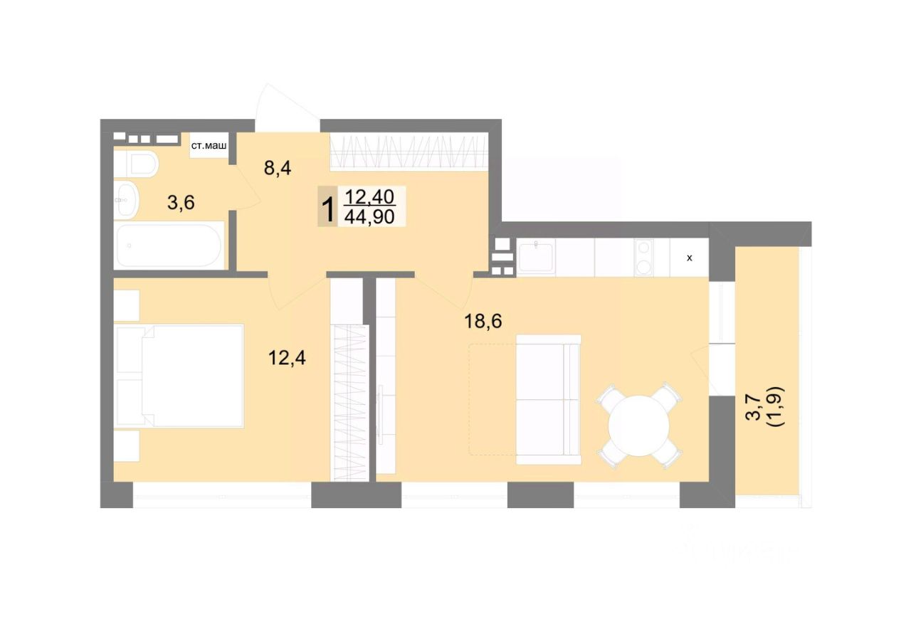 Общая площадь44,9 м2