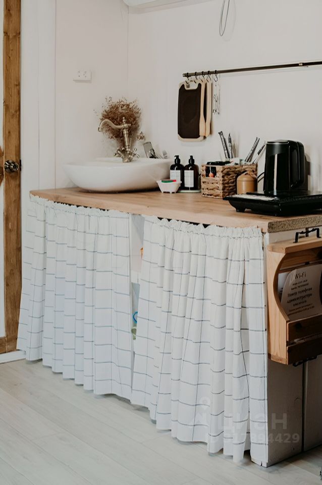 Второй домик 8кв. Также имеется санузел, раковина, кухонная зона и кровать.