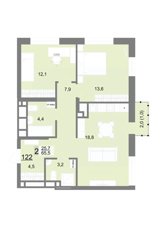 Общая площадь65,5 м2