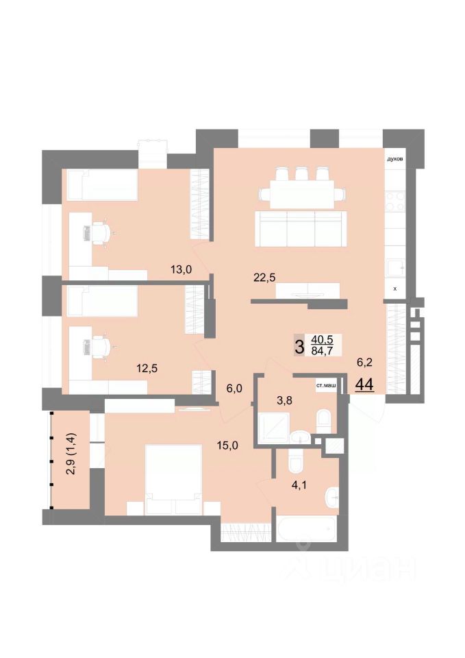 Общая площадь84,5 м2