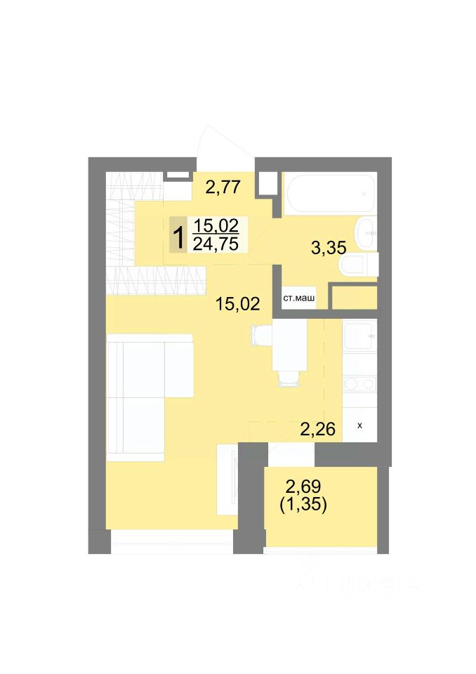 Общая площадь25,52 м2