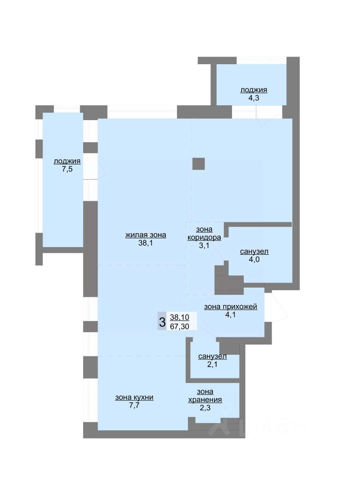 Общая площадь67,3 м2