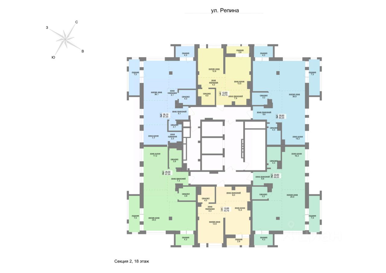 продам 3-к, Репина, 2412 700 000 ₽
