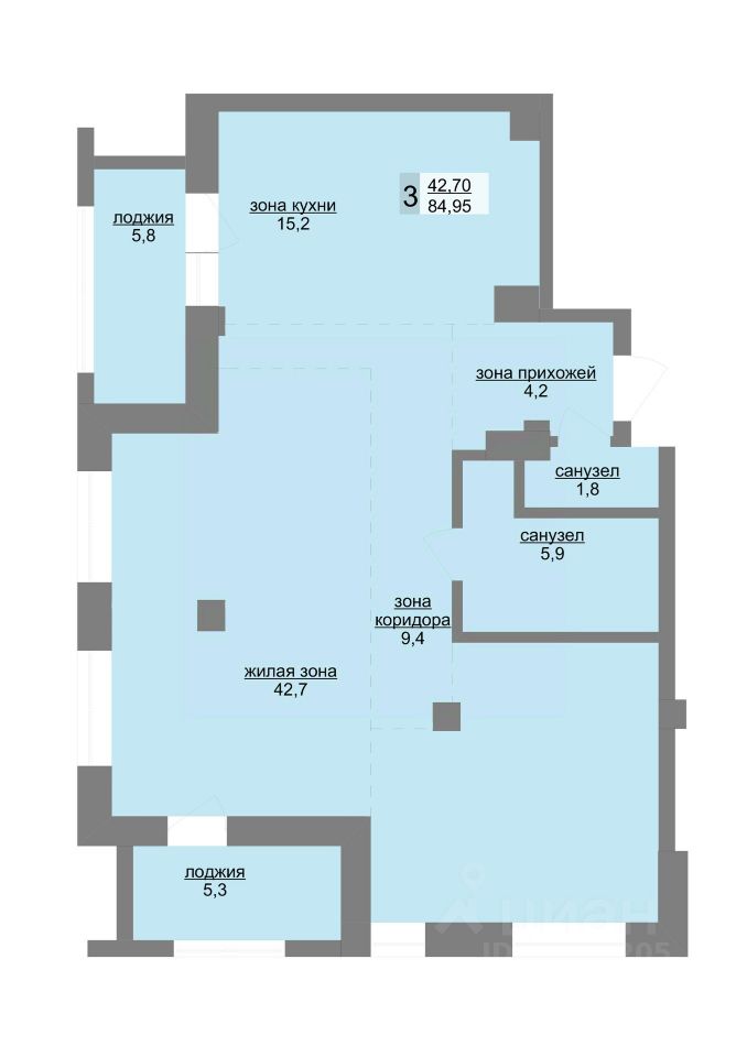 Общая площадь84,75 м2