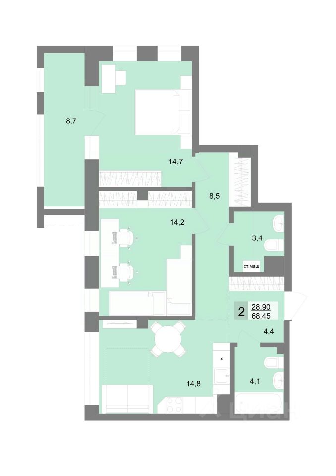 Общая площадь67,65 м2