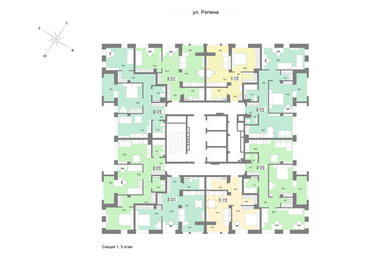 продам 2-к, Репина, 2413 974 900 ₽