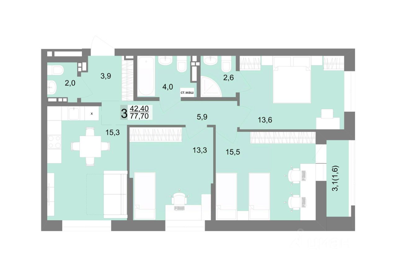Общая площадь77,7 м2
