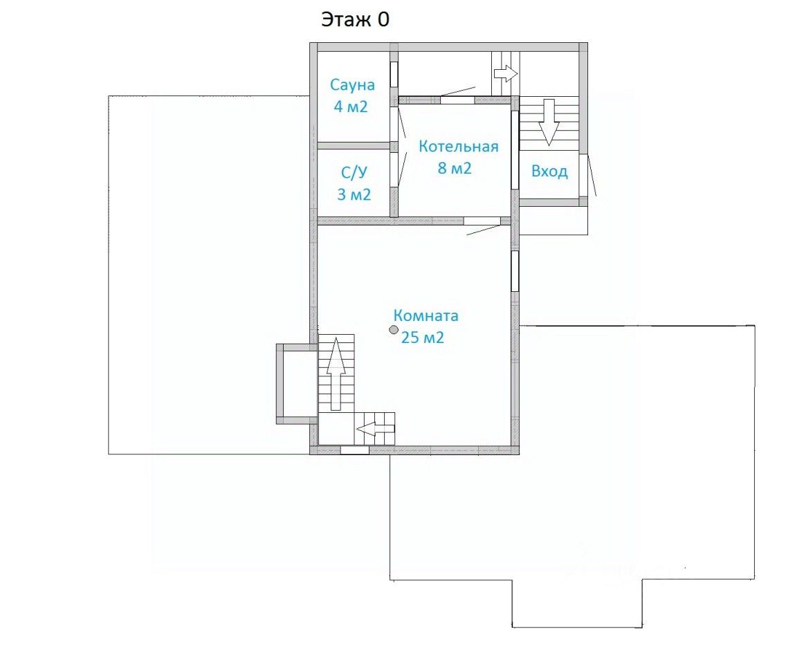 Первый этаж- гостиная, кухня, совмещенный сан.узел, прихожая.
