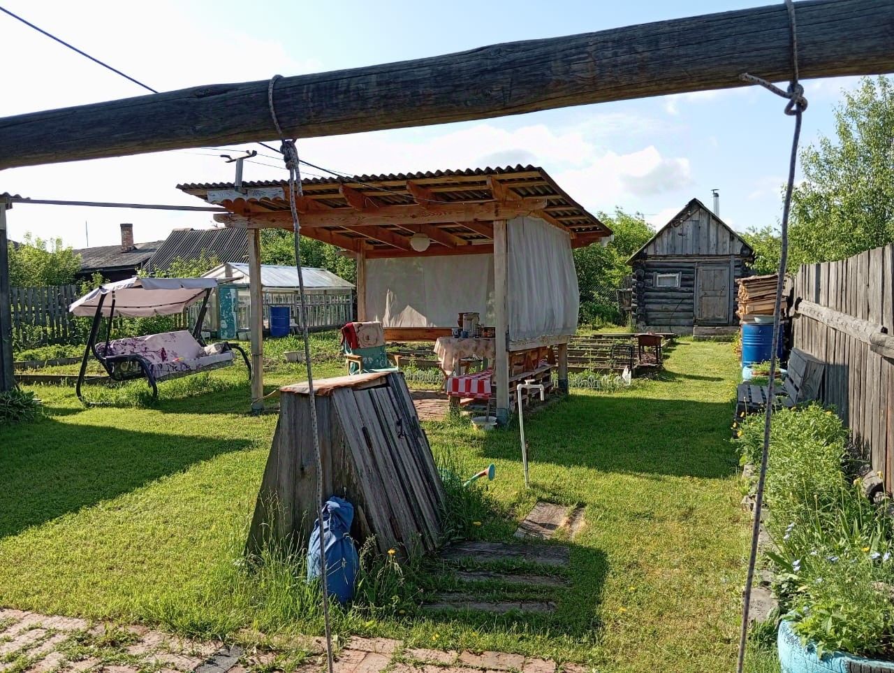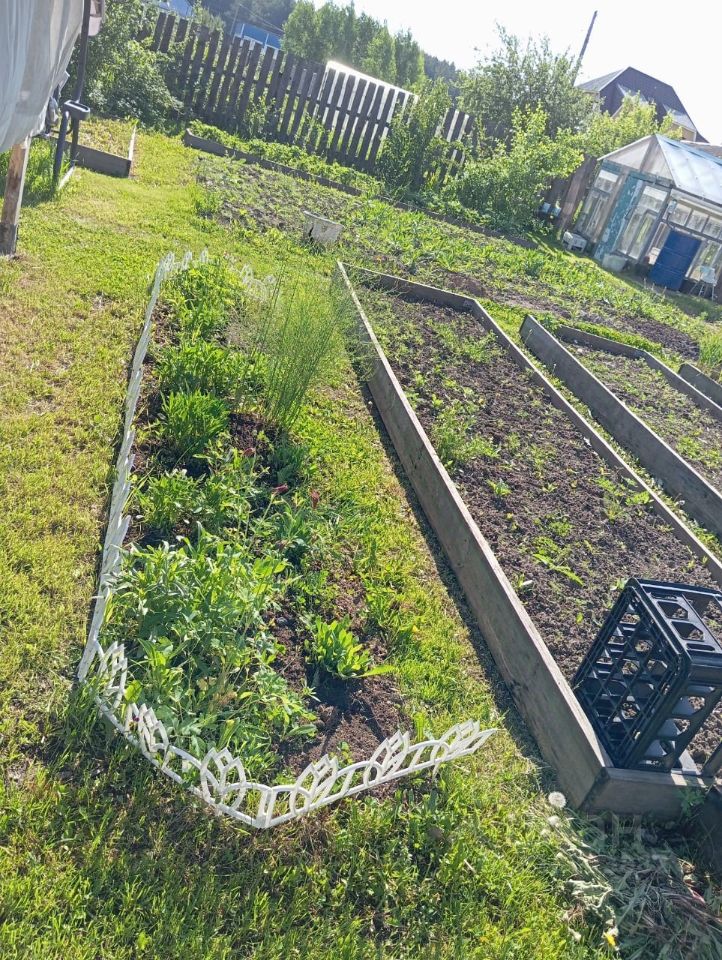 Продам дом. Дом из бревен на фундаменте, отделка сайдинг. Отопление печное, печка новая, также в каждой комнате дополнительно установлены инфракрасные отопители. В доме есть сухое подполье. Ограда крытая. Под крышей сарай для инструмента, уличный туалет и овощная большая шлакозаливная яма. На 6 сотках за домом расположена стеклянная теплица с крышей из поликарбоната(крыша новая), скважина - вода в дом заведена оттуда, беседка, баня с предбанником на высоком фундаменте(в бане новая железная печь и нержавеющая колода). Посажены плодовые деревья - плодоносящие 2 яблони поздняя и ранняя, смородина черная, крыжовник, слива, вишня, малина, ирга. Грядки деревянные. Очень много многолетних цветов. Продажа срочная, т.к. переезжаем в другой город. Очень хочется чтобы новые хозяева успели засадить огород и тепличку, очень жалко если будет не посажено. Земля очень мягкая, плодоносная, удобрена, сорняков практически нет!
