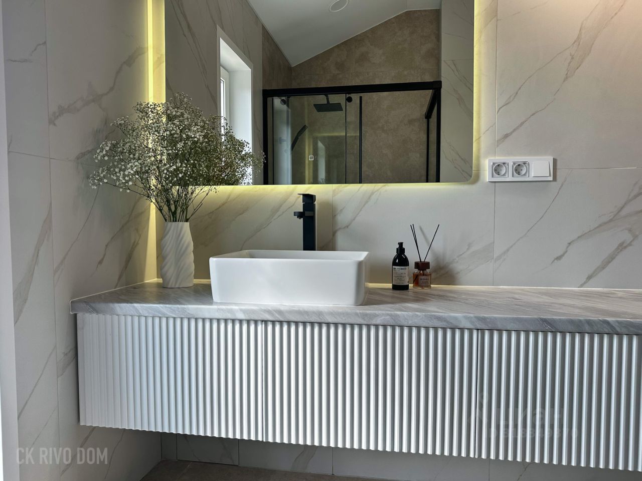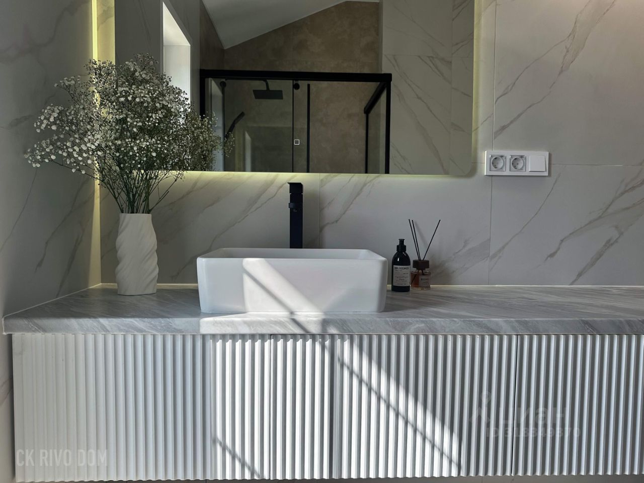Внутри — как в дизайнерском журнале — Моющиеся стены Dulux, кварцвинил, натяжные потолки — Двери с магнитными замками, светильники в каждой зоне — Санузел премиум-уровня: душ без порога, плитка с запилами 45'', стильная мебель