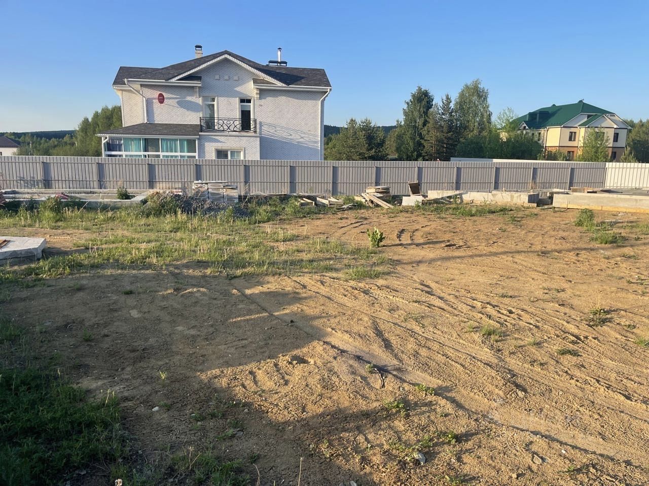 Продается земельный участок в п.Солнечный. Площадь 20сот. На участке выполнена планировка. Сделан фундамент под дом, баню, гряды, теплицу (по всем строительным нормам). Фундамент дома: забурены сваи, ленточный фундамент, проложены коммуникации (водопровод, канализация), выполнена обратная засыпка с тромбованием, залита плита. Наружные размеры фундамента: Дом - 7м * 15,5м Баня - 6,3м * 5,3м. По периметру, забор из профлиста с въездными откатными воротами, калитка. Пробурена скважина, 40метров. опущен глубинный насос. В поселке газ. Разрешение на строительство, получено. Электричество подведено 380В. Расположен в лесном массиве, экологически чистом месте. В 20мин. от города, 3мин. от с.Николо-Павловское. Территория огорожена, видеонаблюдение. Дорога асфальтированная.