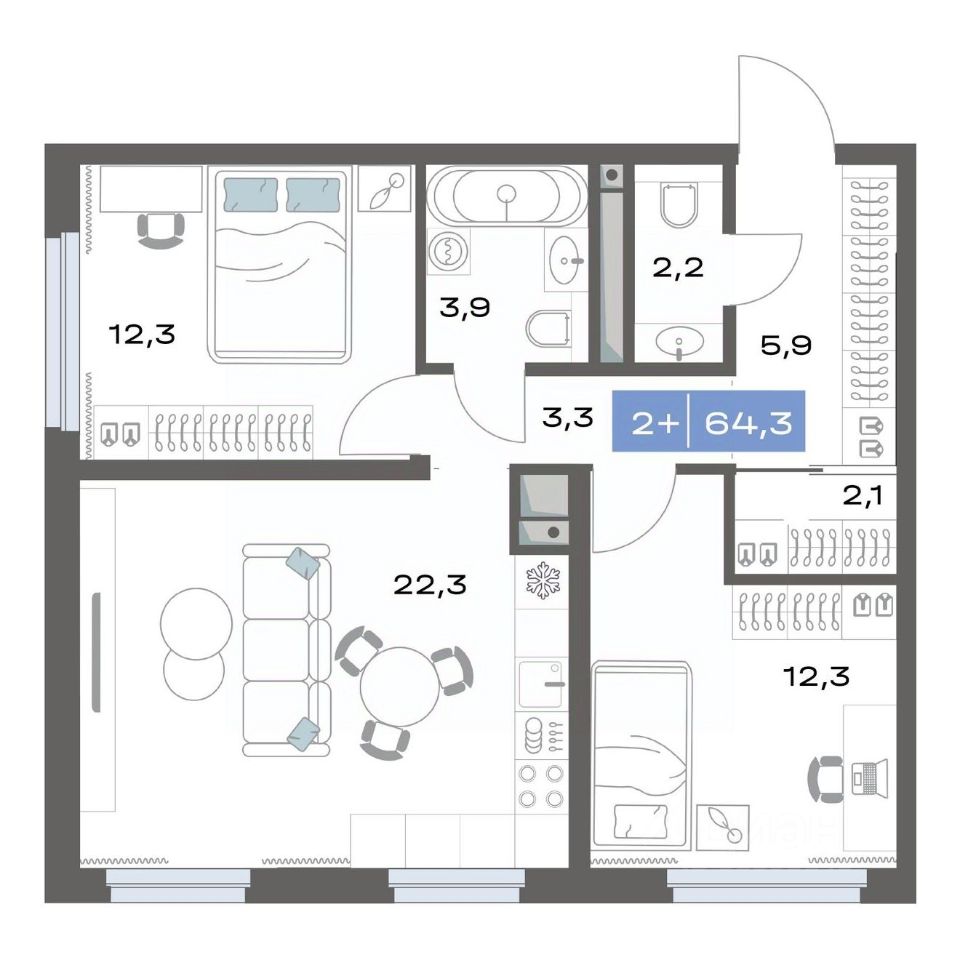 Продаётся 2-комнатная квартира в строящемся доме (Корпус 1.1), срок сдачи: III-кв. 2026, общей площадью 64.3 кв.м., на 14 этаже. Новый жилой комплекс ''Толк Академический'' от застройщика ''СЗ Капитан'' расположен по адресу: г. Екатеринбург, улица Академика Парина.