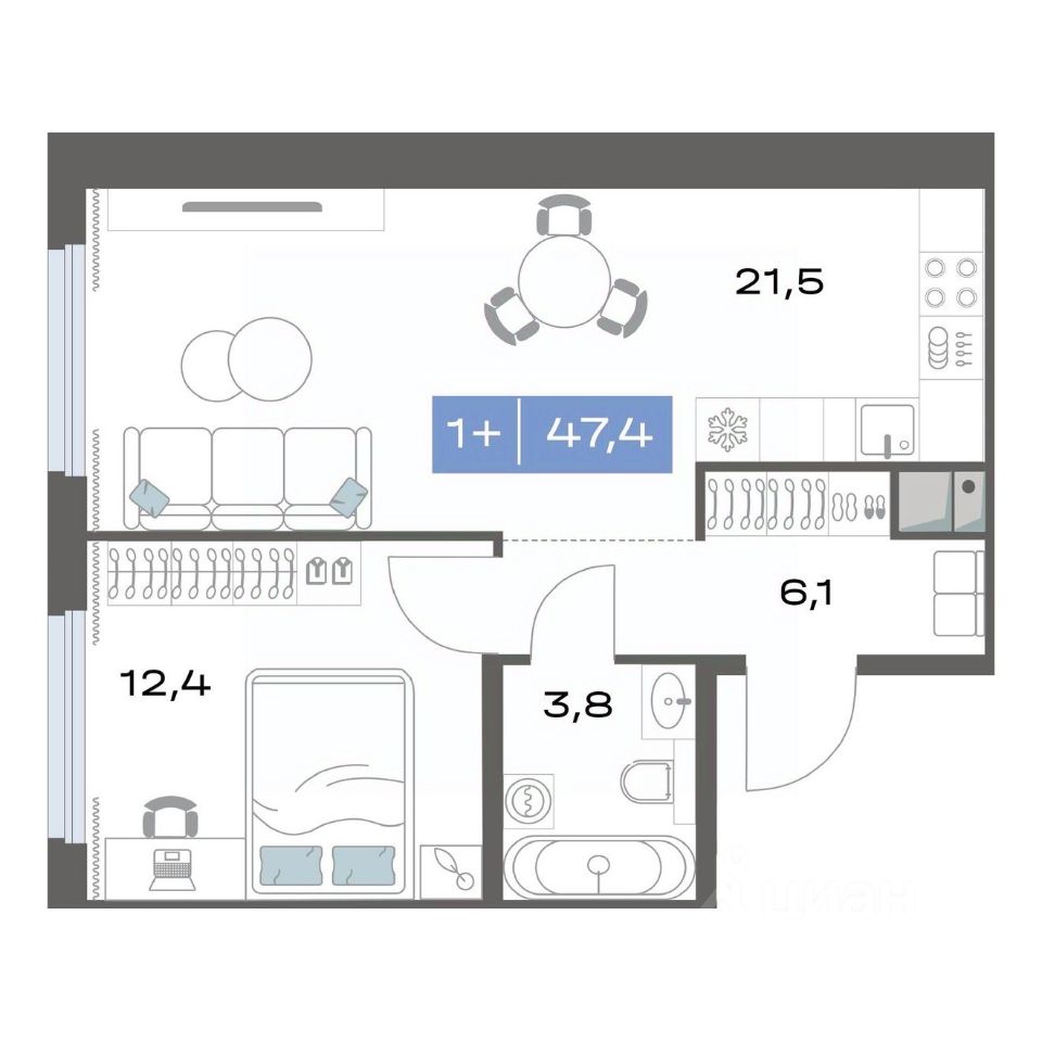 Продаётся 1-комнатная квартира в строящемся доме (Корпус 1.4), срок сдачи: III-кв. 2026, общей площадью 47.4 кв.м., на 2 этаже. Новый жилой комплекс ''Толк Академический'' от застройщика ''СЗ Капитан'' расположен по адресу: г. Екатеринбург, улица Академика Парина.