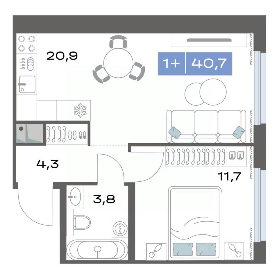 Продаётся 1-комнатная квартира в строящемся доме (Корпус 1.4), срок сдачи: III-кв. 2026, общей площадью 40.7 кв.м., на 3 этаже. Новый жилой комплекс ''Толк Академический'' от застройщика ''СЗ Капитан'' расположен по адресу: г. Екатеринбург, улица Академика Парина.