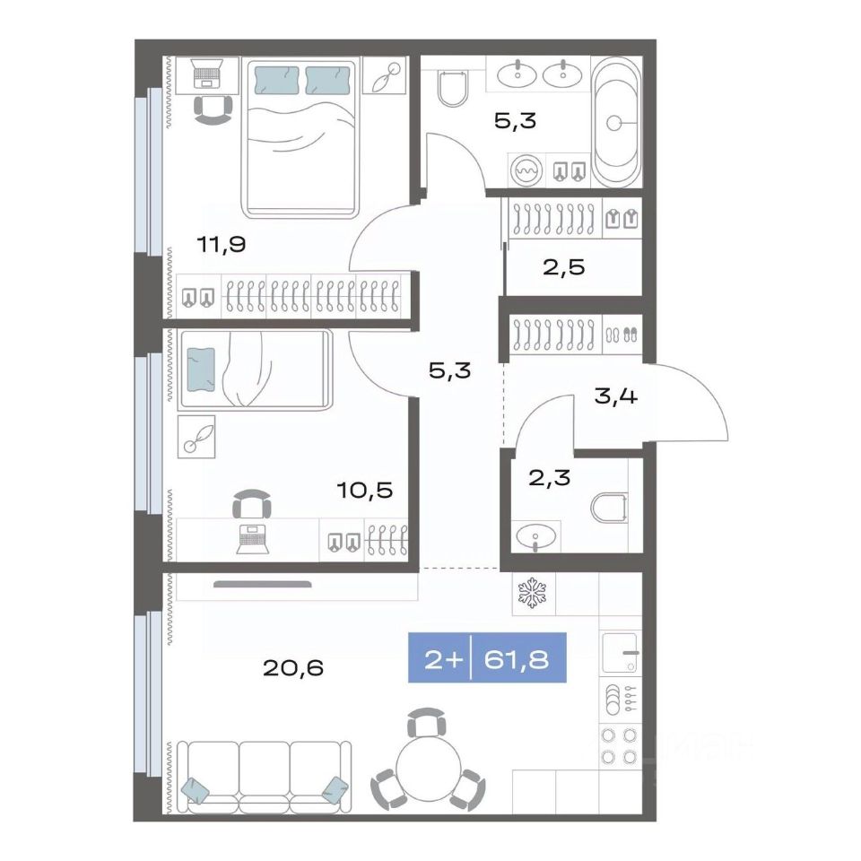 Продаётся 2-комнатная квартира в строящемся доме (Корпус 1.1), срок сдачи: III-кв. 2026, общей площадью 61.8 кв.м., на 12 этаже. Новый жилой комплекс ''Толк Академический'' от застройщика ''СЗ Капитан'' расположен по адресу: г. Екатеринбург, улица Академика Парина.