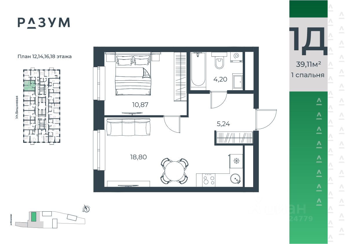 Застройщик - Специализированный застройщик «Разум на Вишневой», ООО. Проектная декларация опубликована на сайте наш.дом.рф
