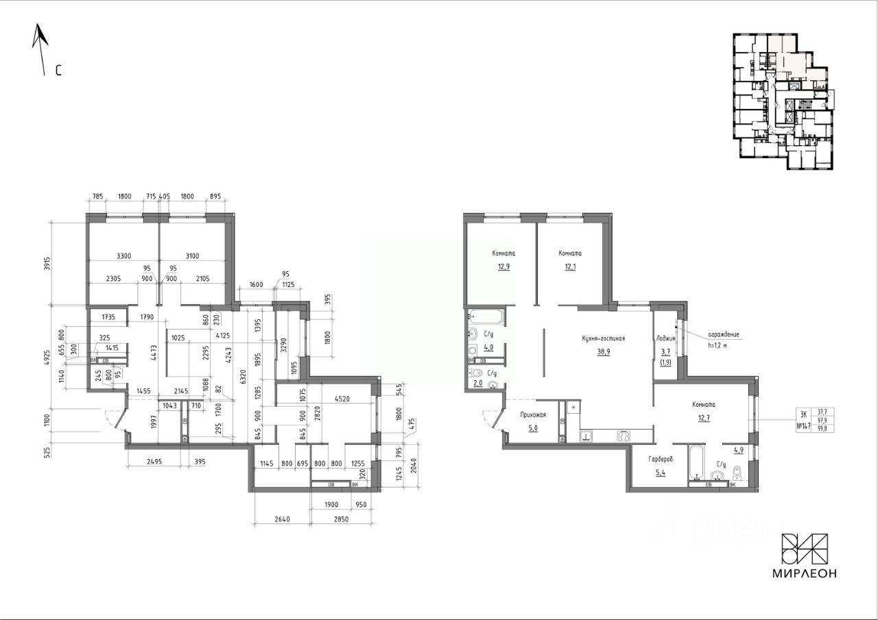 продам 3-к, Агрономическая, 55 стр.12 984 600 ₽