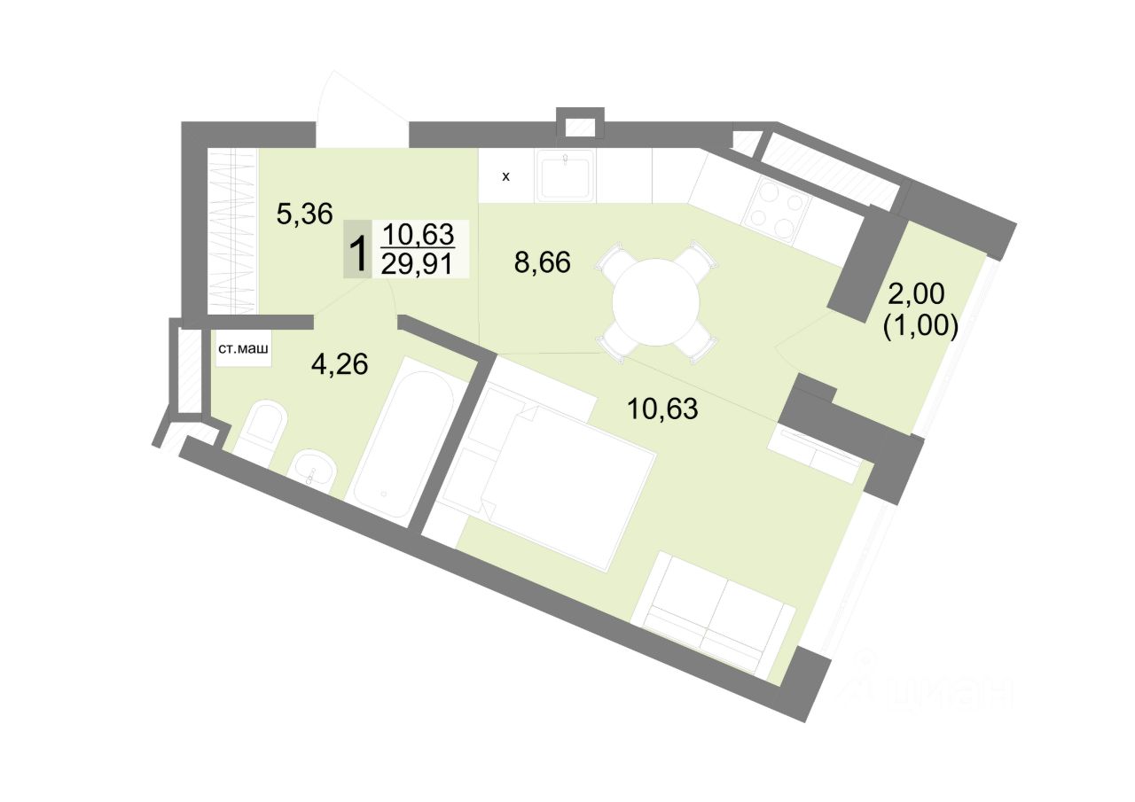 Общая площадь29,91 м2