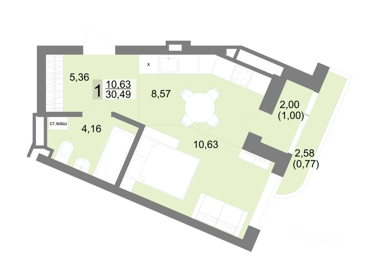 Общая площадь30,49 м2