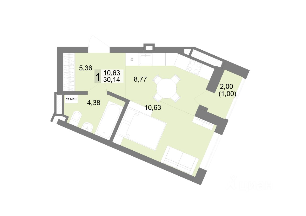 Общая площадь30,14 м2