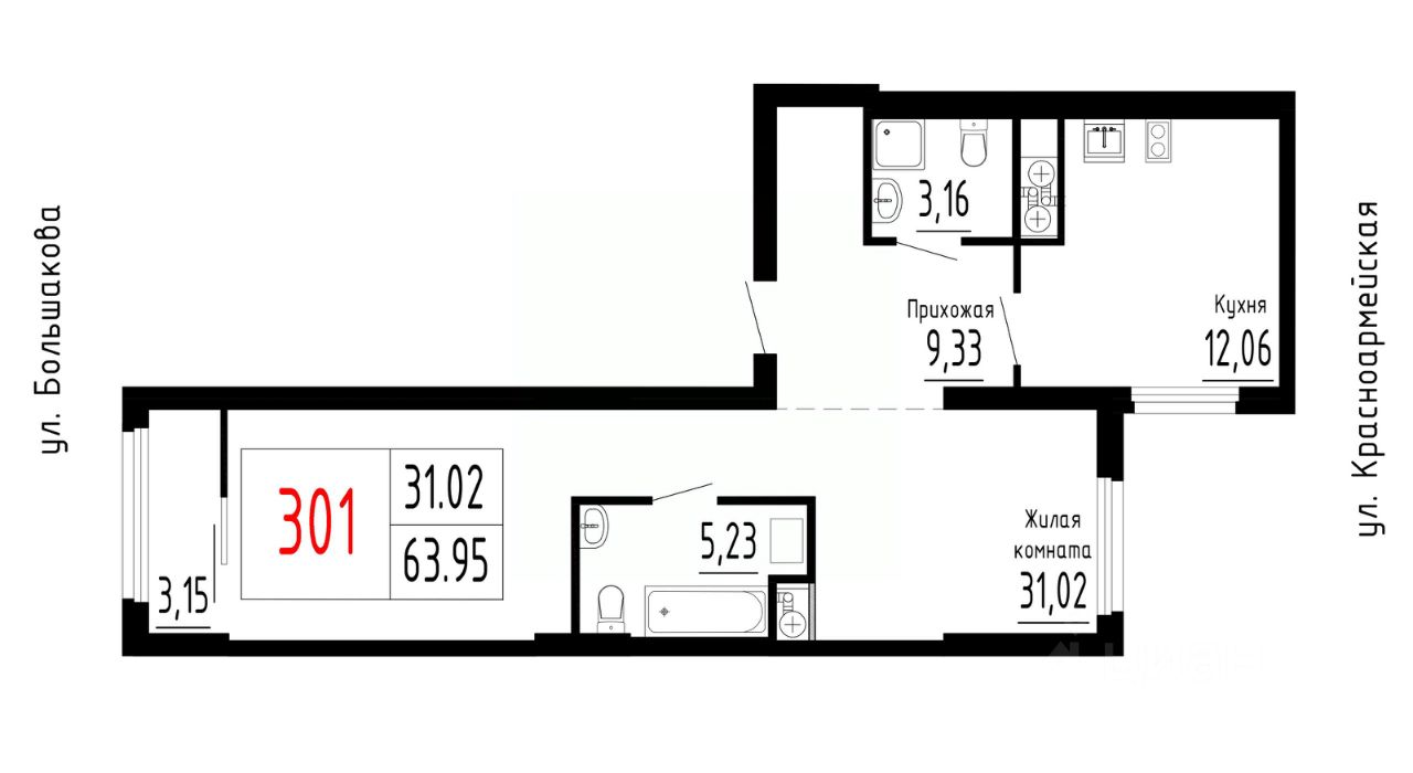 Продаётся 1-комнатная квартира в строящемся доме (Дом 1 секции 1-2), срок сдачи: II-кв. 2026, общей площадью 63.95 кв.м., на 15 этаже. Новый жилой комплекс ''Лувр'' от застройщика ''СЗ Нижнеисетский пруд'' расположен по адресу: г. Екатеринбург, улица Большакова.