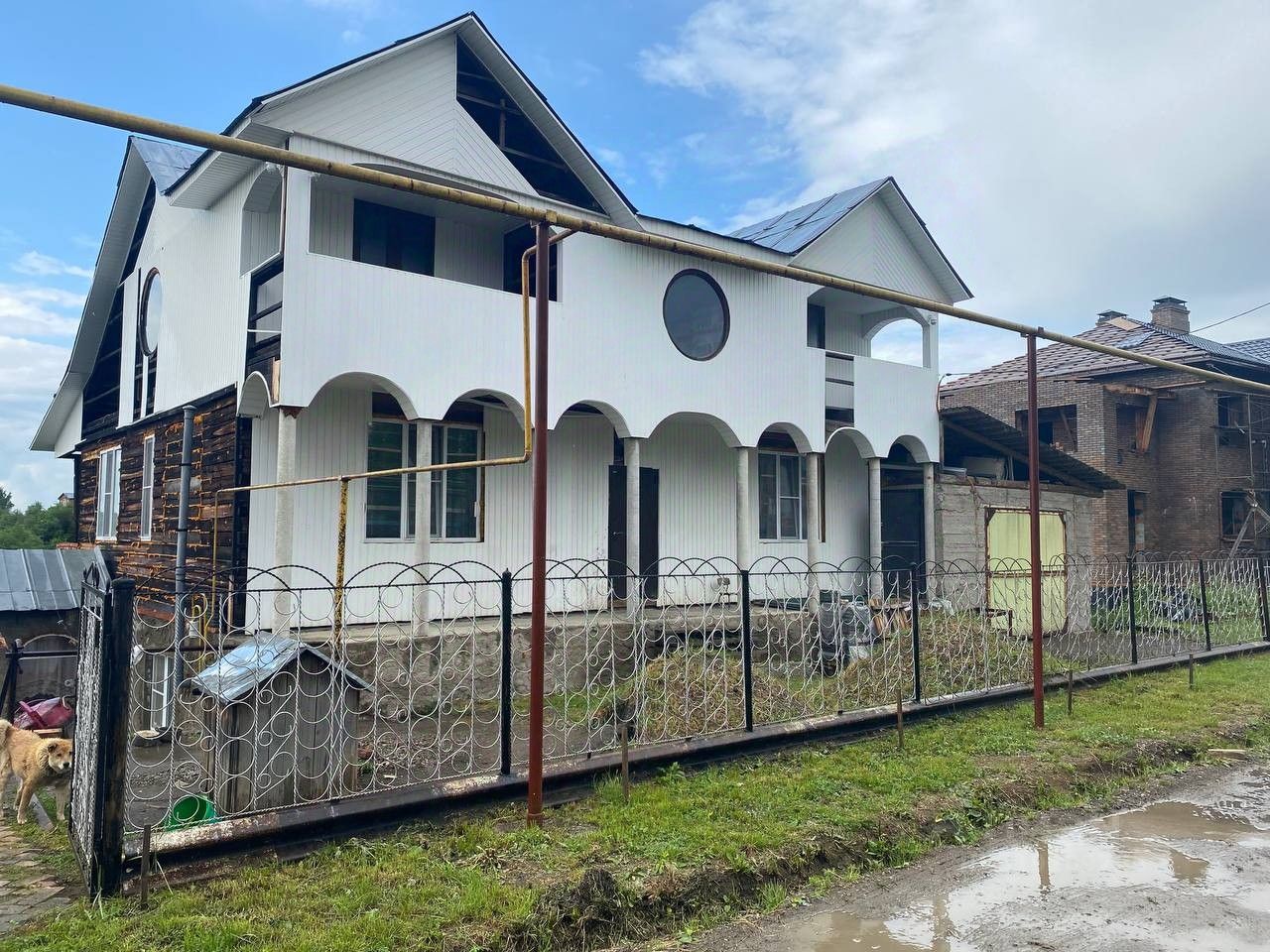 - Фасад ждет своих хозяев, чтоб обрести новый шикарный вид. - Два полноценных уровня с отдельными кухнями и ванными комнатами на каждом этаже. - Отопление газовое, горячая и холодная вода поступает из собственной скважины. - Каждый уровень имеет отдельный выход на улицу, первый этаж оборудован удобным подземным погребом. - Прекрасный вид на реку открывается с балкона второго этажа.