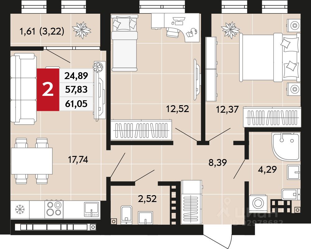 Общая площадь61,05 м2