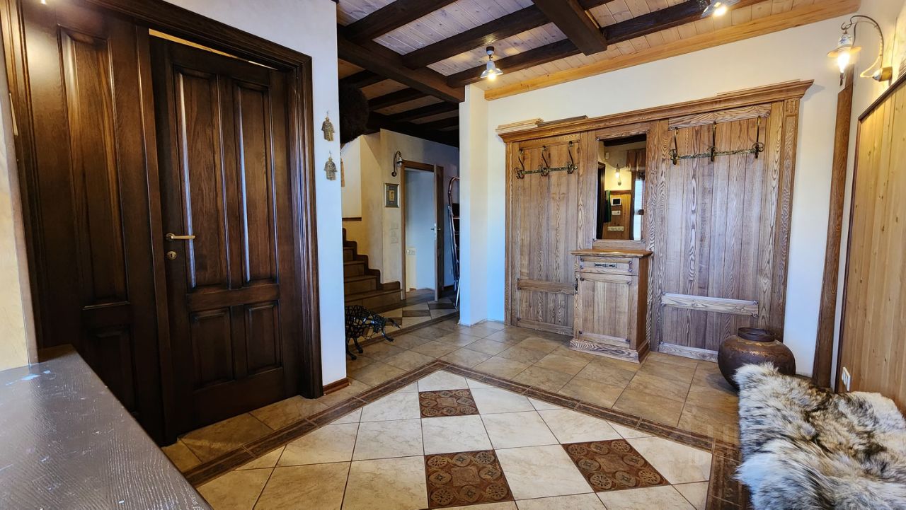 Дом построен в 2018 году из газоблока, снаружи отделан декоративной штукатуркой и натуральным камнем. Вода из двух скважин с современными системами очистки, отопление твёрдотопливным или электрическим котлом, электричество 380 В. Внутри — дизайнерская отделка из кедровой вагонки и паркетной доски, итальянская плитка в санузлах, кухня с техникой премиум-класса (MARCHETTI, SMEG) — всё остаётся новому владельцу!
