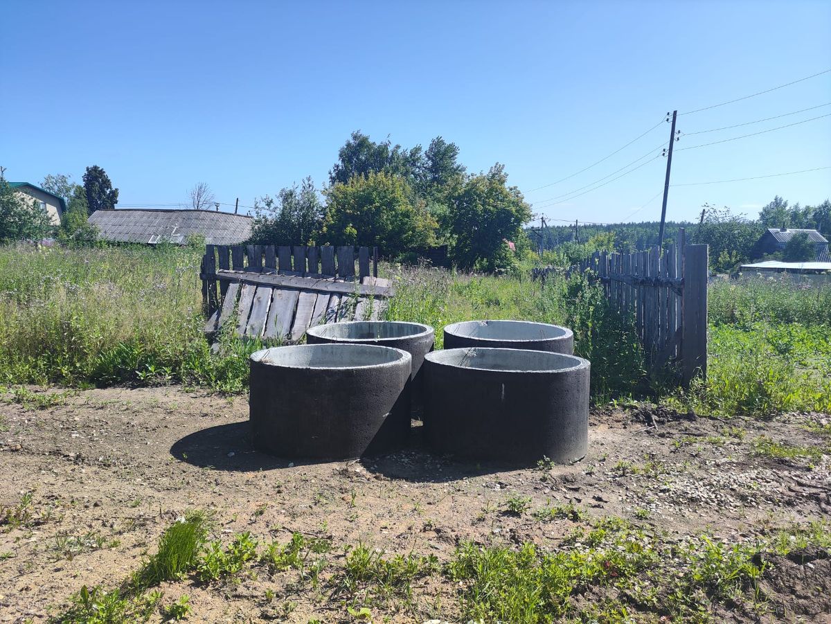 участок 18 соток. забор деревянный с лицевой стороны, парковка отсыпана щебнем. Есть 4 канализационных кольца, 3 больших блока ФБС. Газ ,электричество рядом.