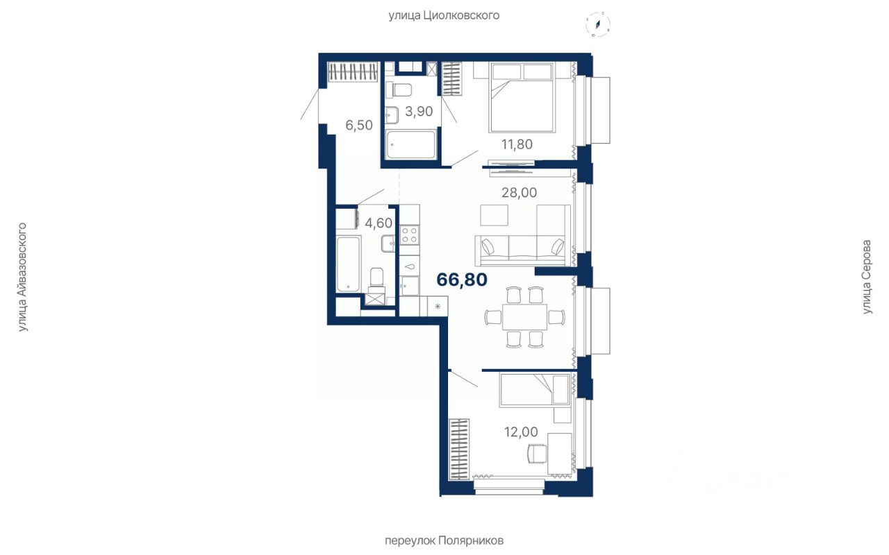 Комплекс представляет собой жилую экосистему Комфорт+ класса: многосекционный дом, закрытая территория, паркинг и коммерческая инфраструктура внутри комплекса.