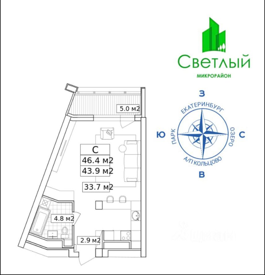 Сдается однокомнатная квартира-студия в ЖК Светлый. Собственник. Дом 5, секция 4 (ближе к лесу), этаж 9. Удобный заезд и выезд через Кольцовский тракт или мкр Уктус. Рядом лесопарк, Нижне-Исетский пруд и комплекс Рамада. На территории ЖК находится остановка автобусного маршрута 083, наземный охраняемый паркинг, магазины, детские и спортивные площадки, хоккейный корт.
