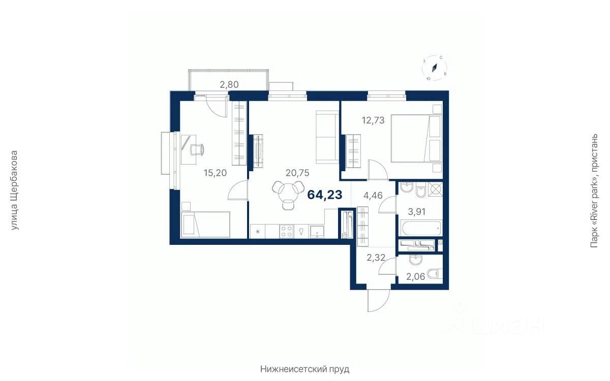 продам 2-к, Щербакова, 154 стр.9 873 304 ₽