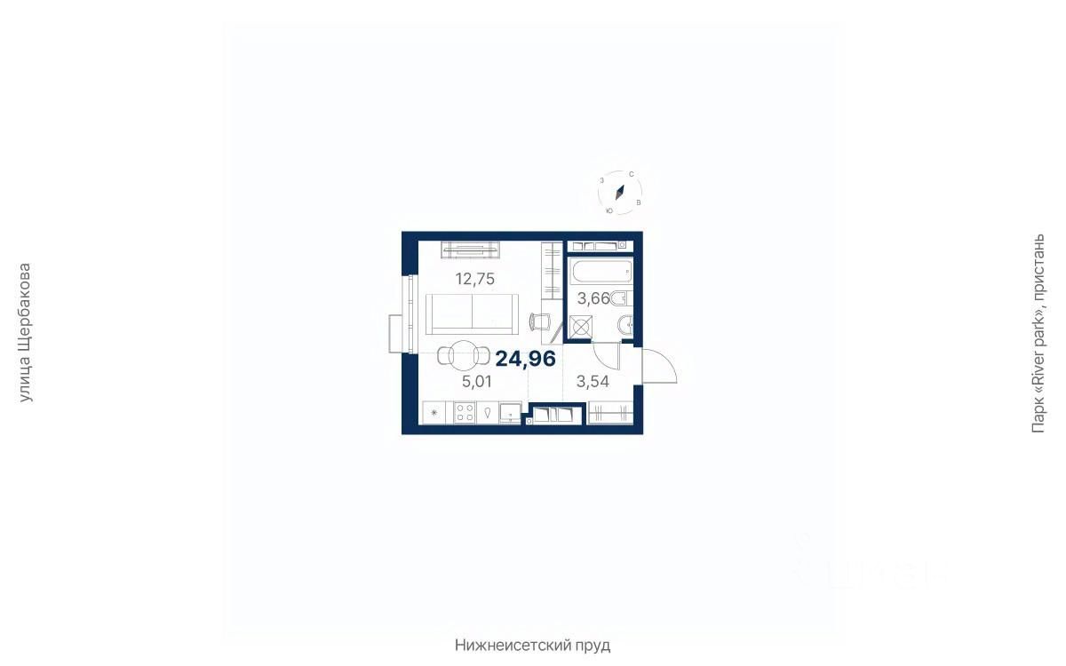 продам 1-к, Щербакова, 154 стр.4 441 047 ₽