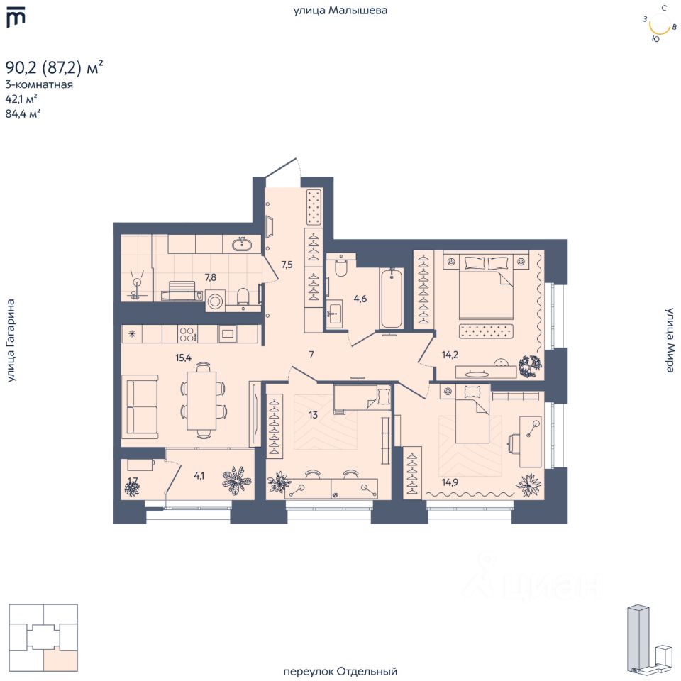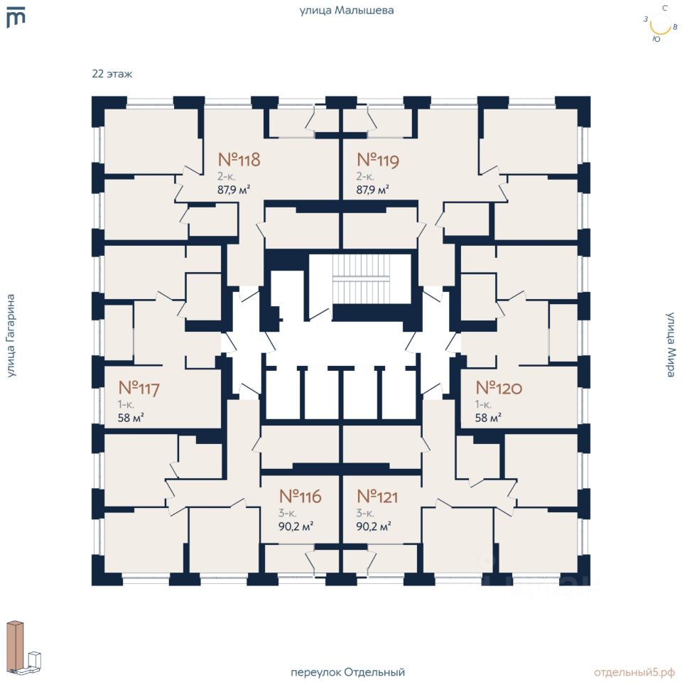 Новый дом в любимом районе Отдельный, 5 — это жилой комплекс из двух секций — 29 и 8 этажей, объединённых стилобатом, с семейным кафе и коммерческими помещениями на первом этаже, где арендаторы будут подобраны с учётом семейного позиционирования комплекса. 5 преимуществ ''Отдельного'': 1. Семейные планировки Мы планировали дом таким образом, чтобы в нём было удобно семьям с детьми. В доме нет квартир-студий, минимальная площадь 1-комнатной квартиры составляет 58 квадратных метров. В квартирах предусмотрены хоз. комнаты, большие кухни-гостиные, мастер-спальни и кабинеты. Места для колясок и велосипедов предусмотрены на каждом этаже. На -1 этаже располагаются 69 кладовых. 2. Закрытый, безопасный, интересный двор Организация двора предполагает 2 уровня благоустройства. Первый уровень рассчитан преимущественно на детей 3 — 12 лет. Здесь предусмотрены несколько зон активности с горками, качелями, дорожками для катания на самокатах и велосипедах (змейка и волна), безопасный скалодром и песочница под теневым парусом. Второй уровень — это кровля стилобата. Здесь нашлось место для теплицы-оранжереи и зоны для пикников, зоны с песочницей для самых маленьких и мам, уединённые места для компаний и зона с шезлонгами, где можно погреться на солнце. Для детей постарше здесь предусмотрена большая винтовая горка по которой можно спуститься вниз и подняться обратно. 3. Потолки 3 метра с запасом под отделку во всех квартирах Создают ощущение простора, визуально увеличивают объём помещения и улучшают циркуляцию воздуха. 4. 4 из 5 лифтов спускаются в паркинг С продуктами или детской коляской любой из 4 лифтов всегда ждёт вас в паркинге. Каждый лифт грузоподъемностью не менее 1000 кг. 5. Машиноместо для каждой резиденции В тёплом подземном паркинге предусмотрено 171 машиноместо, вмещающее 195 автомобилей, а также 10 мотомест — на 188 резиденций. Так же есть машиноместа для коммерческих помещений. Машиноместа доступны к покупке для всех резидентов комплекса, независимо от площади приобретённой квартиры. Есть возможность подключить зарядную станцию 220В на любом машиноместе. Технические условия для подключения владельцы электрокаров смогут получить в УК, но только после ввода дома в эксплуатацию. Расположение Втузгородок. Здание располагается в Кировском районе Екатеринбурга в границах улиц Малышева — Мира — переулка Отдельный — Гагарина, по адресу: переулок Отдельный, 5. Важно, что в нашем доме, находящемся рядом с главными улицами города — улицей Малышева и проспектом Ленина, тихо даже с открытыми окнами.
