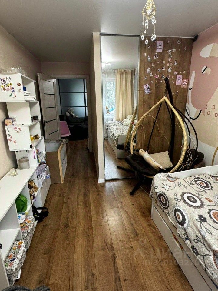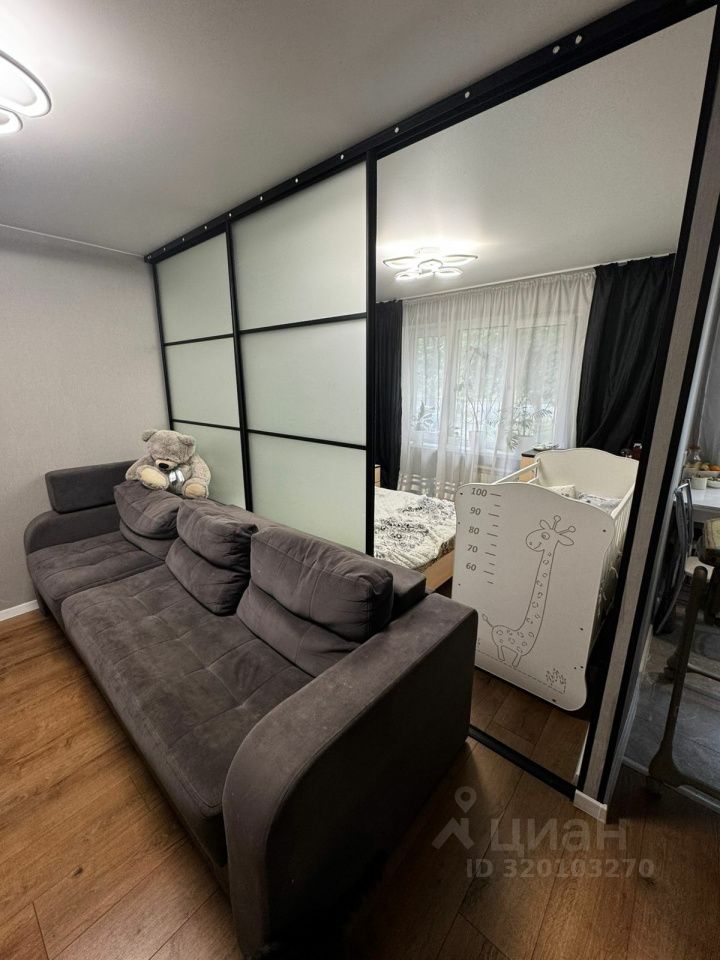 В квартире сделан ремонт, две отдельные комнаты и гостиная, разделены зонально перегородкой, что очень функционально. Есть просторная и вместительная гардеробная. В квартире остается встроенная кухня.