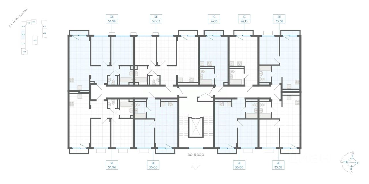 Квартиры комфорт-класса площадью до 77 кв.м с чистовой отделкой. Стильные и уютные холлы с помещениями для детских колясок и велосипедов.