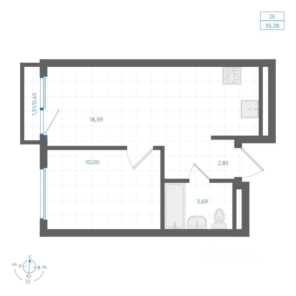 Общая площадь35,38 м2